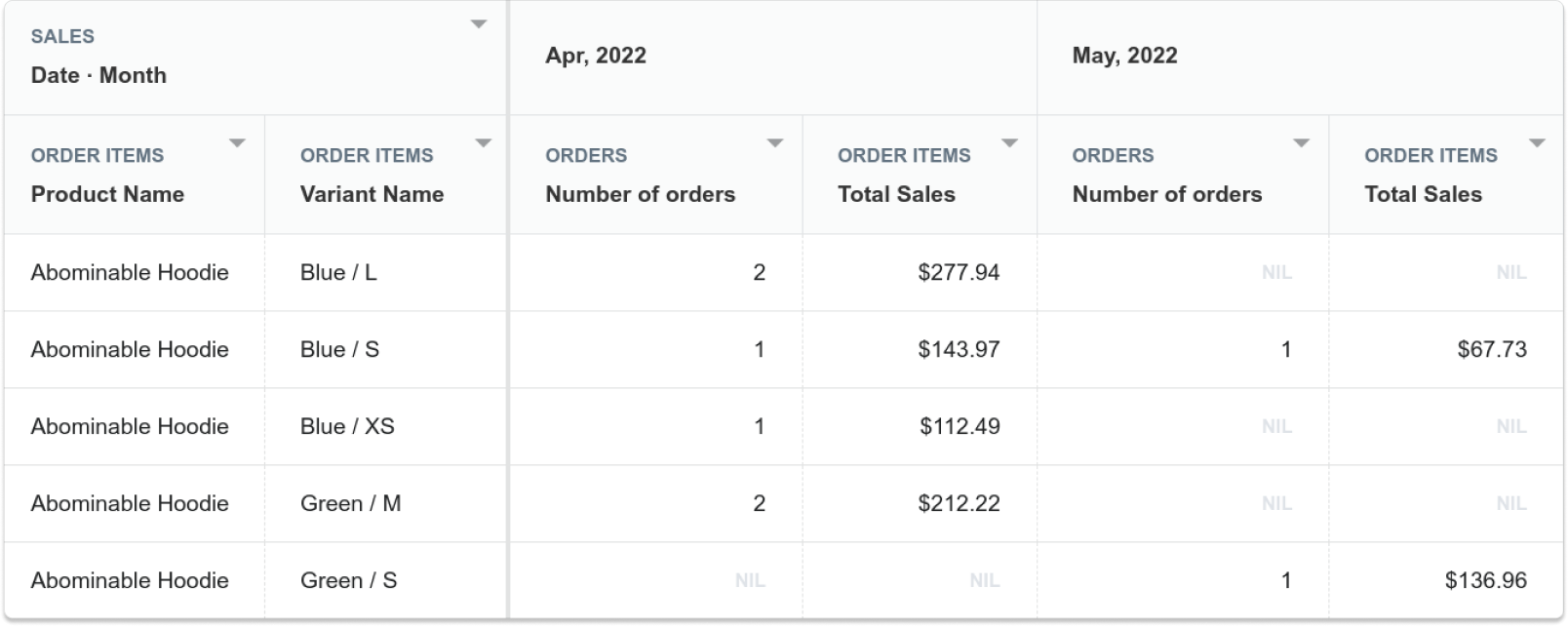 Let's say you have a report based on Month and Variant Name: